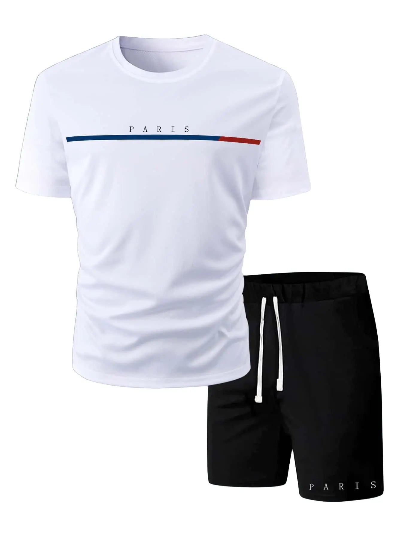Men's T-shirt Set Short Sleeved Top+ Shorts Loose Cotton